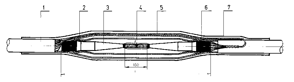 SPOJNICE KSxrt 69 - 150 kV Izolacija ovih spojnica se formira motanjem izolacionih samospajajućih traka na bazi EPR gume. Radi poboljšanja dielektričnih svojstava međuprostora između izolacije kabla i izolacije od EPR traka primenjuje se ulje visoke gustine sa odličnim dielektričnim svojstvima. Da bi se jako električno polje smanjilo na dozvoljene vrednosti koriste se rezistivne maramice sa nelinearnom volt-amperskom karakteristikom. Ako se zahteva izolaciona spojnica sa prekidom ekrana radi transpozicije kablovskih linija, uz spojnicu se isporučuje i kutija za transpoziciju. Provodnici se spajaju varenjem u sferi argona. Moguća je konstrukcija i sa olovnom cevi, ako kabl ima olovni plašt.