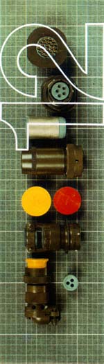 Miniature circular connectors Series 12 are for application in stationary and mobile units and in very unfavourable ambient conditions (high humidity, vibration, quick temperature changes, etc.) used for cable interconnection or cable units. They can be used for interconnection of cabinets and panels with cables, wires and single insulated conductors. Due to their reduced volume, pefrrmances and general characteristics , connectors of this series are cuitable for employing into units at land, vessels and aircrafts. They fully meet MIL-C-26482-G, Series 1, VG 95-328, DEF 59-35, IEC 130-7 and are manufactured against licence, agreement by Souriau. Construction Construction pair consists of a plug (connector with male contacts) and receptacle (with female contacts). Plug or receptacle consists of: - Metal shell - Rubber insulator - - Contacts (male and female) - Accessories (cap) Depending of function connector can be performed as - Mounting board (panel) connector - Mountig cable connector (released) - Cable continuation connector Shell Metal shell is of light metal alloy with cadmium and chromate protective finish in grey-olive colour. Borad mounting shells: A - for mounting with square flange - withour insulator B - for mounting with square flange - with insulator C - for nut mounting - with insulator Mounting cable shells E - for cable mounting (released) F -for cable continuation All above stated shell classes are made in 9 sizes: 08, 10, 12, 14, 16, 18, 20, 22, 24. Shells regardless of class and size can be mounted with male or female contacts. Locking Electrical and mechanical circuit current connections are provided by mating of connector pair (plug-receptacle) and by locking. Locking is three-point bayonet coupling which provides: easy and quick mating vibration stability dust resistance acoustic and optic locking control. Bayonet perfrmed with 3 plugs on connector shell for board mounting and cable continuation and 3 spiralchamfers on clamping grommet on released connector. At terminations of spiral chamfers are three circular holes which provide locking position and visual sealing control. Five non-symmetrical longitudinal plugs on released connector shell and the equal number of parallel chamfers on connector shell for panel mounting and cable continuation provide a properguiding, not allowing mismating. Insulator Insulator is of a signale part polychloroprene and fixed to shell by sticking. It was non-changeable contacts for the purpose of preventing non-desirable mating with adjacent connector of the same size and the same contact arrangement it can be turned is shell for W, X, Y, Z angle. It is recommended the use of normal position, if possible Insulator face with male contacts