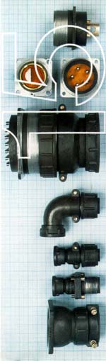 | Round and waterproof connectors Round Circular Conectors Of Normal Overall DimensionsApplication Round circular connectors with threaded coupling-series 15,have normal overall dimensions and are intended for usage in connection of electrical lines, parts of electro and radio appliances, appliances with multi-core cables, i.e. bundles of conductors of for extension of multi-core cables. They are intended for operation in circuit -voltages up to 850 V DC or 500 V AC rms, grequency up to 3 MHz. Their characteristics fultil requirements of SNO 5180, and TOC Test Certificate confirms their quality. Construction Depending on it's function, connector can be produced in two versions: panel mounted connector, cable mounted connector. Panel mounted connector can be unsealed or axially airtight sealed. Cable mounted connectors are not sealed. Non - sealed panel or cable mounted connectgors are produced with male and female contacts. Sealed panel mounted connector are maunufactured with male contacts only. The only exception are 152A20 002AFB6 and 152A36015AFB6 which are axially sealed connectors with female contacts. Shell Connector shell is made of Al -alloy with anodized finish. Depending on connector s purpose, shell style can be as follows: Panel mounting connectors: with square mounting flange, without a back-shell with squae mounting flange, with a back-shell Cable mounting connectors: E - for cable terminating (free connector) F - for cable extending All above mentioned styles are produced in 10 sizes: 12, 16,20.28.32.36.40,48,55 and 60. Contacts Contacts (male and female) are made of copper alloy and are hard silver plated. They are made in 5 sizes (16, 12, 8, 4, 0) and conductor terminations are solder pot. All contact, except sizes 12 and 0, have Aform conductor termination. Contact size 12 is made in two forms: form A and form B.