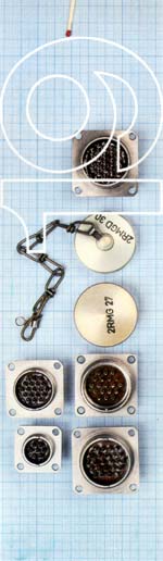Connectors With Threaded Coupling Miniature round circular connectors with threaded coupling, hermetically sealed, series 19, intended for usage in connection of electrcal lines, in electro appliances and systems, as well as for applianes with multi-core cables and bunches of conductors. They are intended for operation in circuits-voltages up to 56o V (i.e. up to 700 V) DC or 500 V ACRMS, frequency up to 3 MHz. They are produced with male contacts only. They mate with unsealed miniature round circular connectors, series 17. By thir characteristics they fulfil the requirments of SNO 5182. Shell Connector shell is made of steel and nickel-plated. They are manufactured with square flange for panel mounting only, in 10 sizes: 14, 18, 22, 24, 27, 30, 33, 36, 39 and 42. They can have the folowing styles: A - for mounting by square flange, withour back-shell. B - for mounting by square flange, with back-chell. Contacts Contacts (male only) are made of special steel and nickel-plated. They are produced in 4 sizes: 1o, 14, 16 and 20. The conductor terminations are solder pot and can be used either for normal conductor size (Form "A") or for bigger size (Form "B")