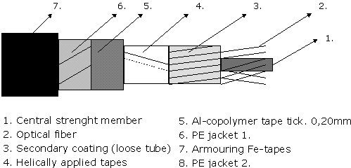 Optical cable construction : The construction basic elements of non-metallic optical cable forseen for duct pulling are shown on figure 1.